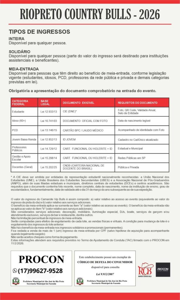 O não atendimento a essas exigências poderá impedir o acesso ao evento.