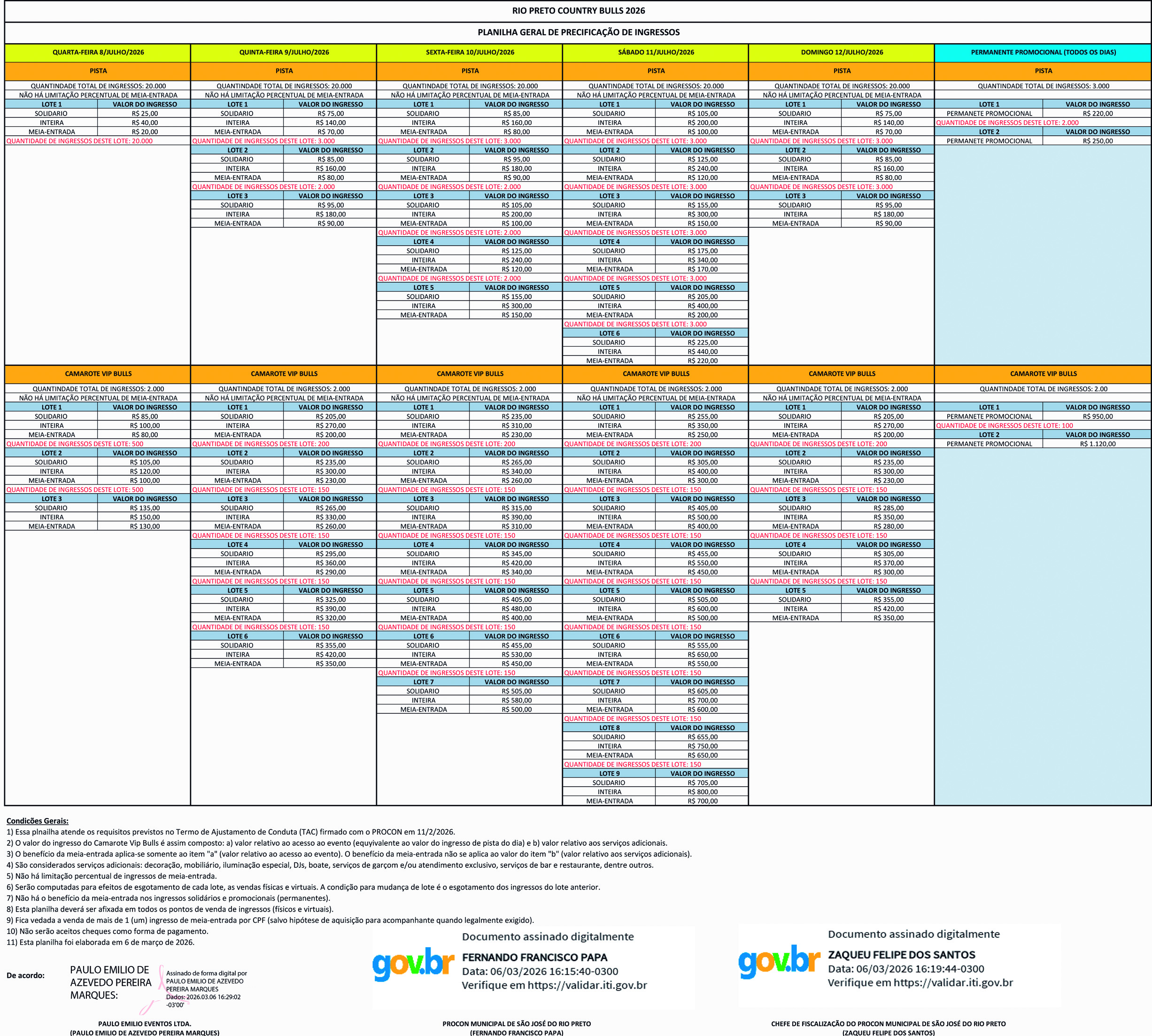 As condições para entrada de menores no evento poderão ser alteradas sem aviso prévio, a depender das condições que vierem a ser estabelecidas por ocasião da expedição do competente alvará pelo juízo da infância e juventude.